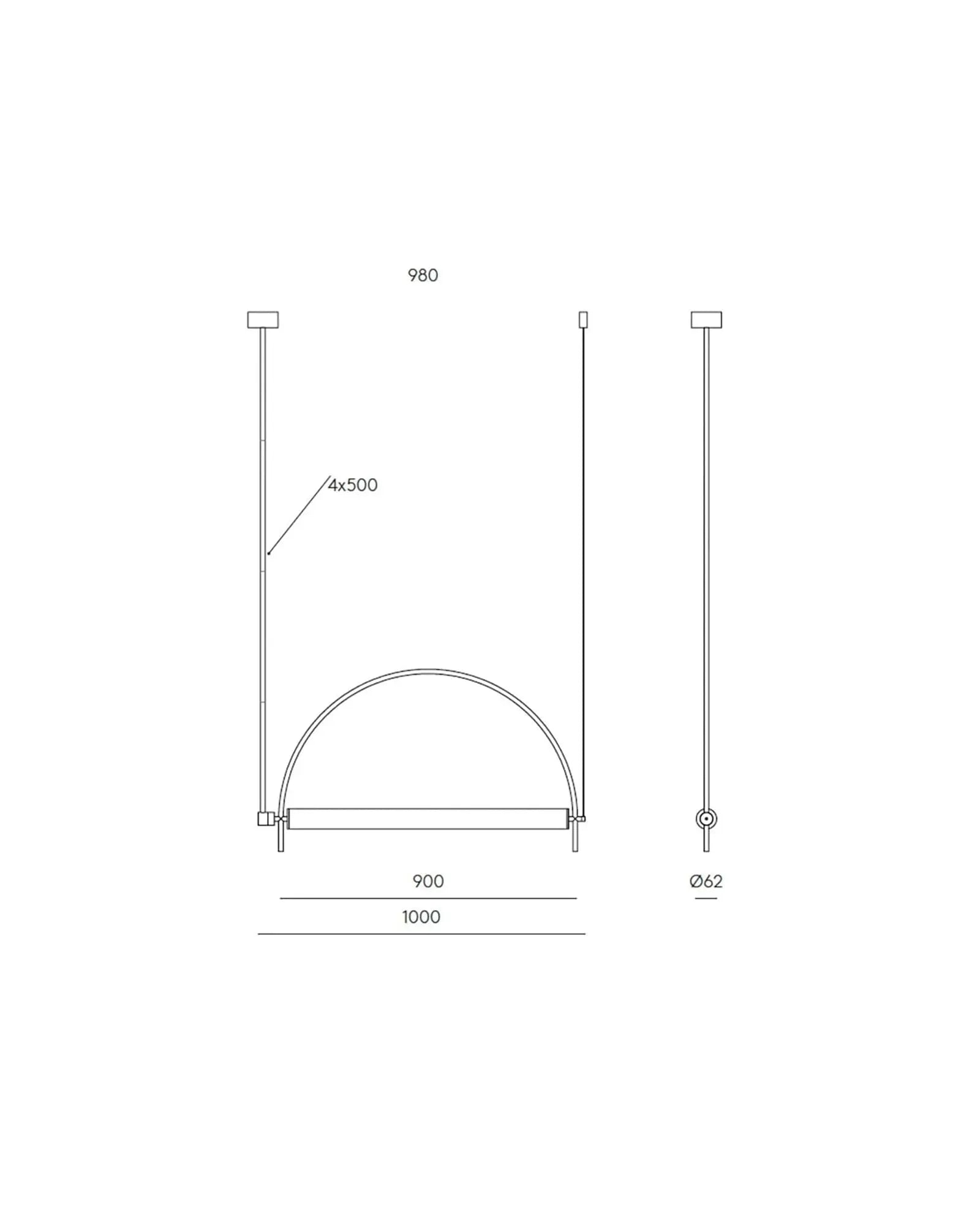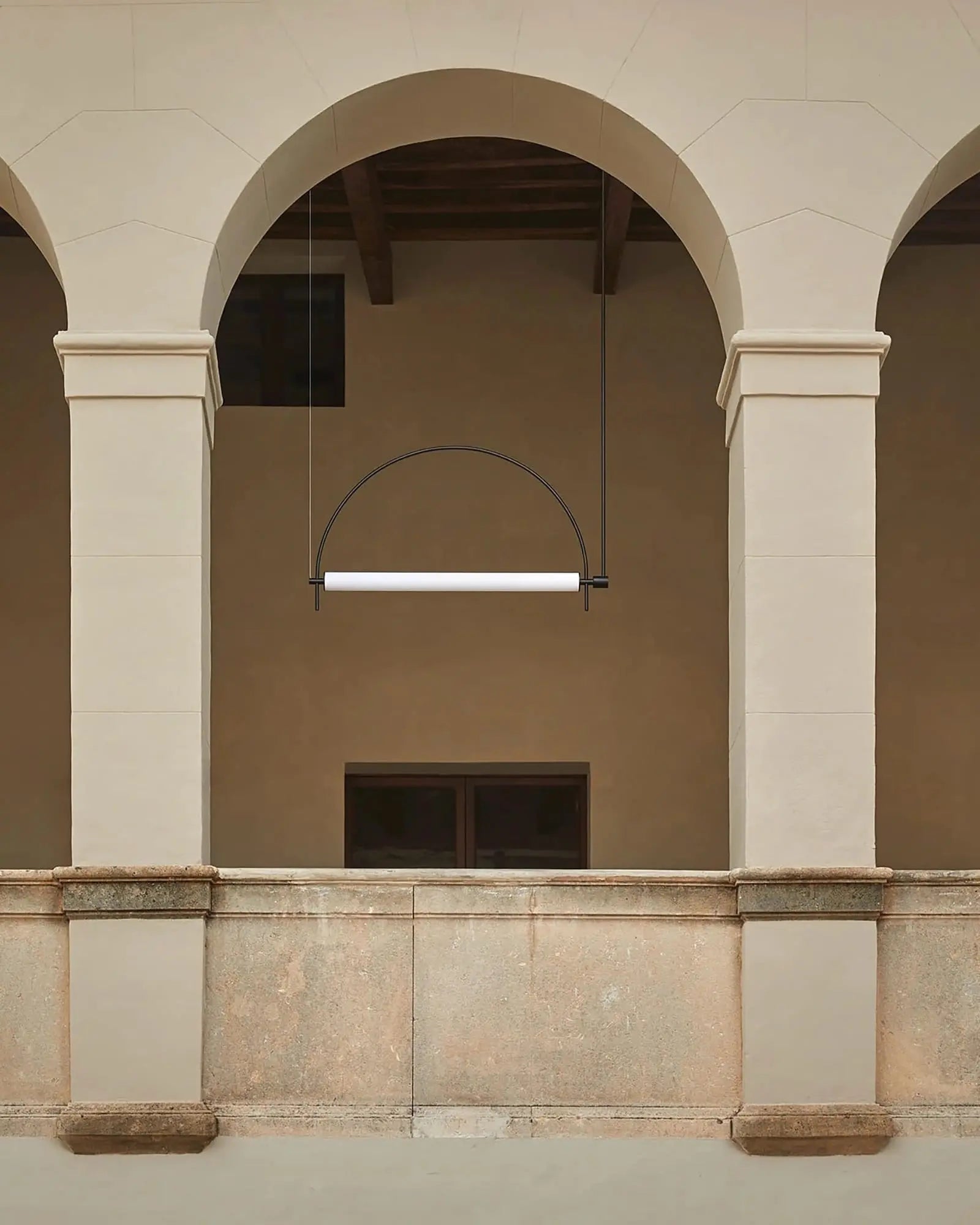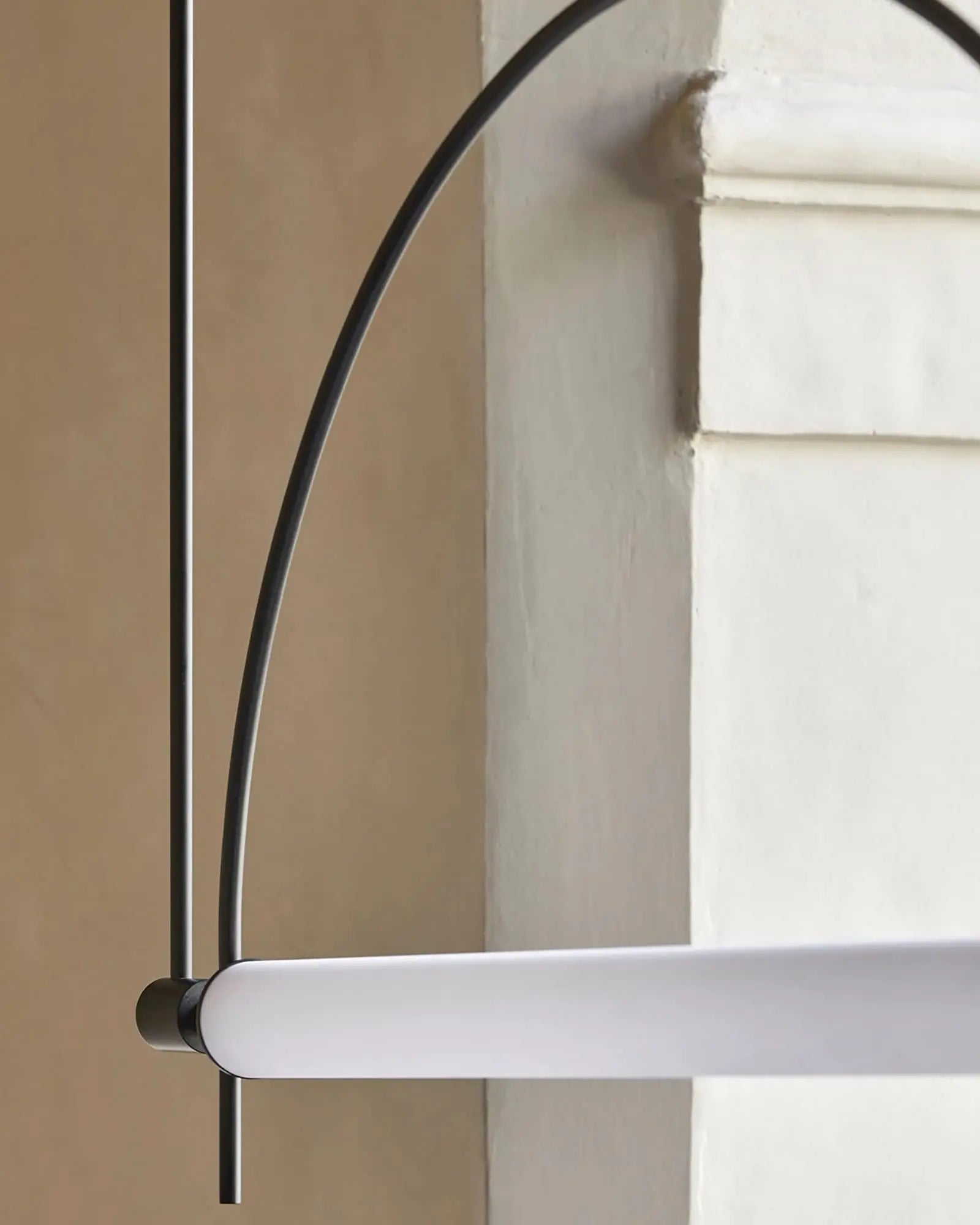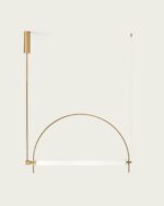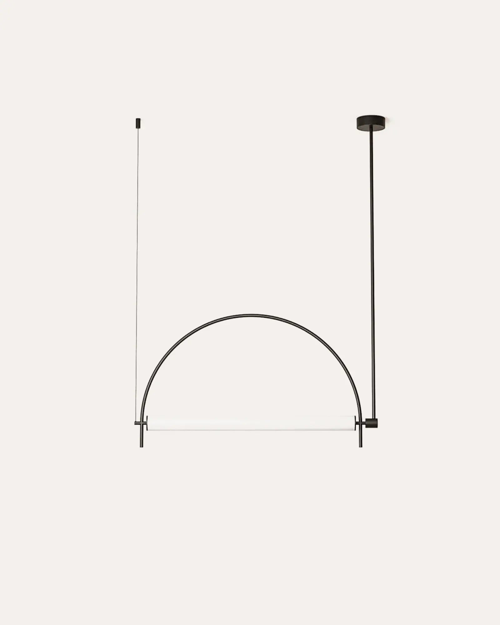 This pendant light fuses modern minimalism with sleek versatility: crafted from metal (available in matte black or electroplated gold), it features an arched frame paired with a diffused acrylic light source.