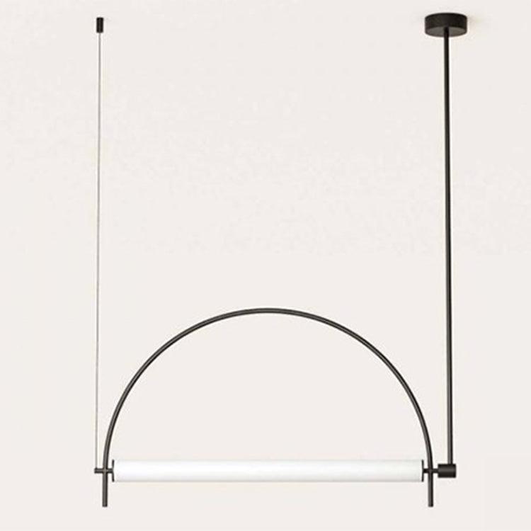 This pendant light fuses modern minimalism with sleek versatility: crafted from metal (available in matte black or electroplated gold), it features an arched frame paired with a diffused acrylic light source. Its clean, linear silhouette—defined by the curved metal structure and slim acrylic bar—casts even, soft illumination, ideal for dining tables or open-concept living spaces. The dual-finish options let it complement both understated and luxe interiors, merging functional lighting with contemporary, sculptural appeal.